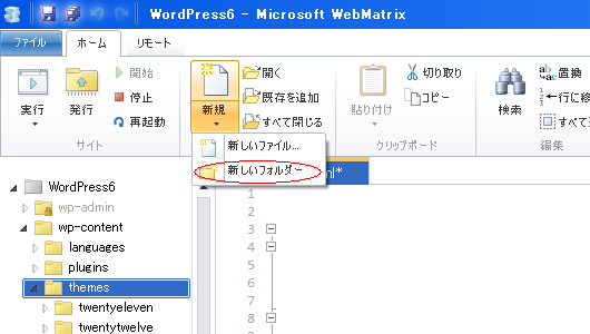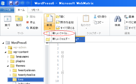 themeフォルダを選択した状態で「新規」アイコンをクリックしkwaフォルダを作成します。
