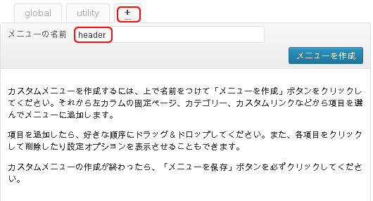 <!–?php // カスタムメニュー register_nav_menus( array( ‘place_global’ =—-> ‘グローバル’,